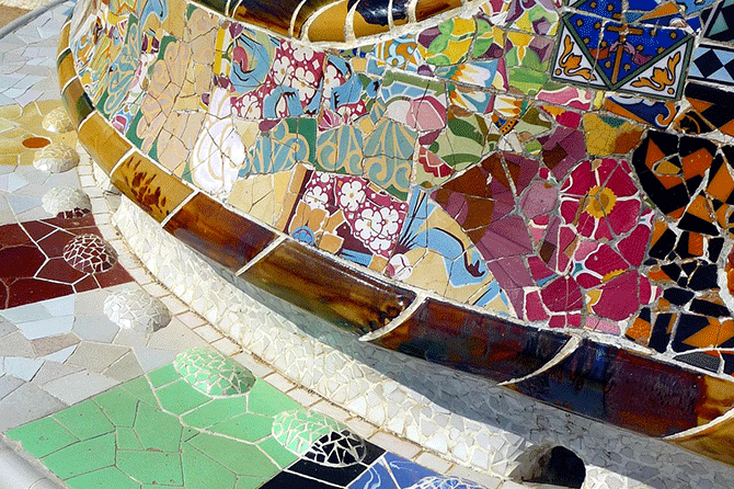 - Trencadis. Technique de mosaïque utilisant des morceaux cassés et dépareillé de faïence ou de verre de couleur.