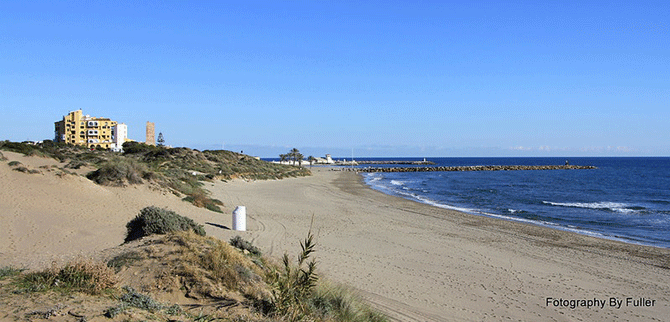 - 1700 m de sable doré en font l’une des plus vastes plages de la Province de Malaga.